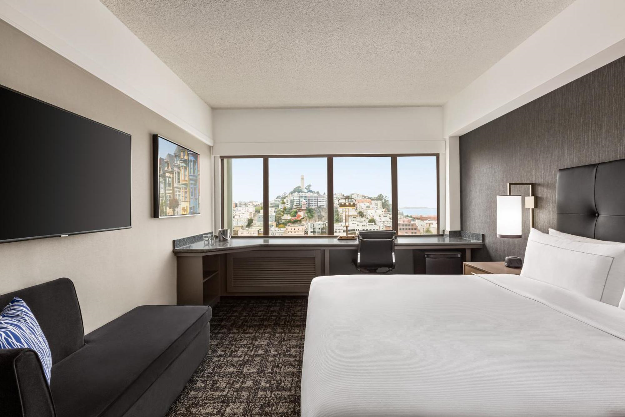 Hilton San Francisco Financial District places you in the heart of downtown with sweeping Bay views, modern guest rooms, and on-site dining at 750 Restaurant & Bar. Just steps from Chinatown, Union Square, and the Embarcadero, this hotel offers meeting space, fitness facilities, pet-friendly rooms, and easy access to San Francisco’s top attractions.