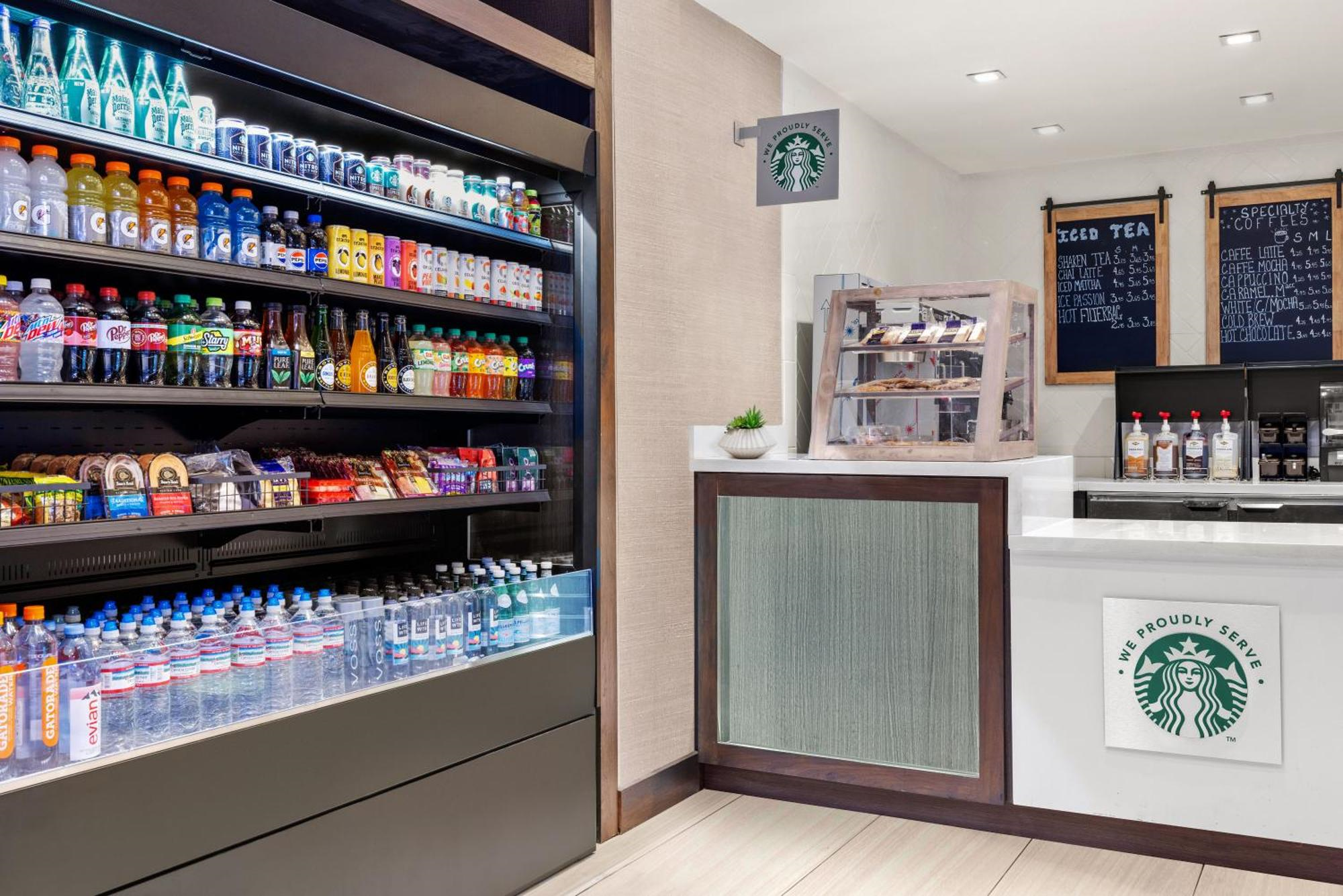 Yes — the property features Hank’s Kitchen + Bar and an onsite coffee cafe with drinks and snacks.