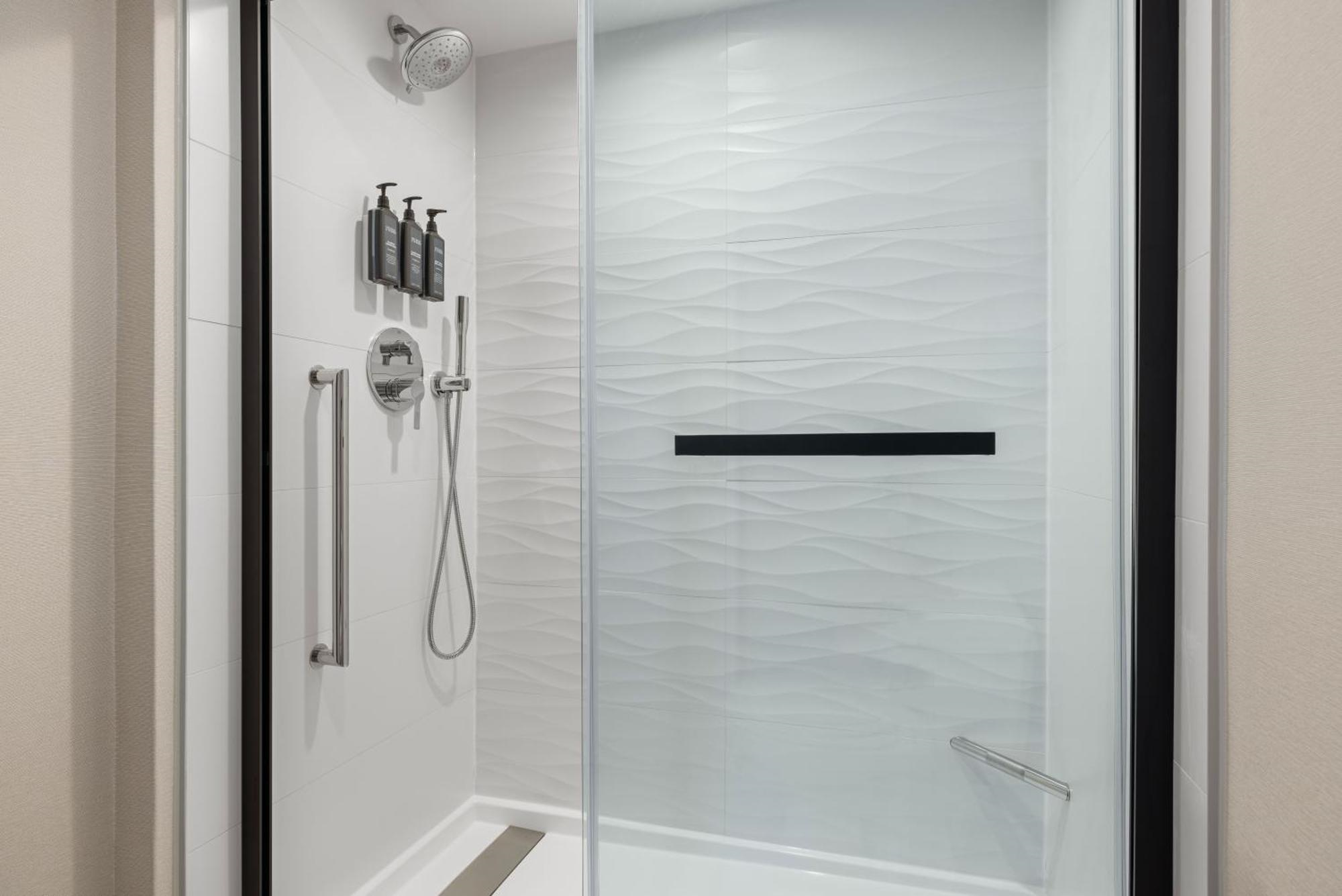 The hotel offers accessible parking, service animal accommodations, and accessible routes to the pool, business center, fitness center, meeting spaces, and guest rooms. Guest rooms feature roll-in showers, grab rails, wheelchair-height toilets, mobility-accessible layouts, closed-caption TVs, hearing kits, electronic keys, lowered deadbolts and viewports, self-closing doors, and TTY/TTD compatibility. Please contact the hotel for specific accessible needs to ensure the hotel will be able to meet your requirements.